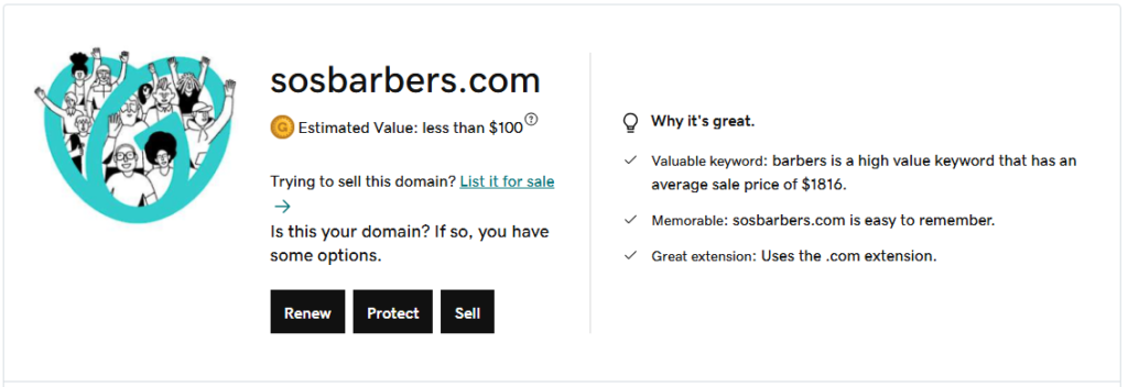 We own “SOSBarbers.com”, which means it is not available for purchase through any third party. If you believe this domain is a strong fit for your brand, we’re offering it directly to you—eliminating registrar brokerage fees (which can exceed $100) and providing it at a price below its estimated market value of $100. This is a unique opportunity to secure a premium domain without the usual overhead!